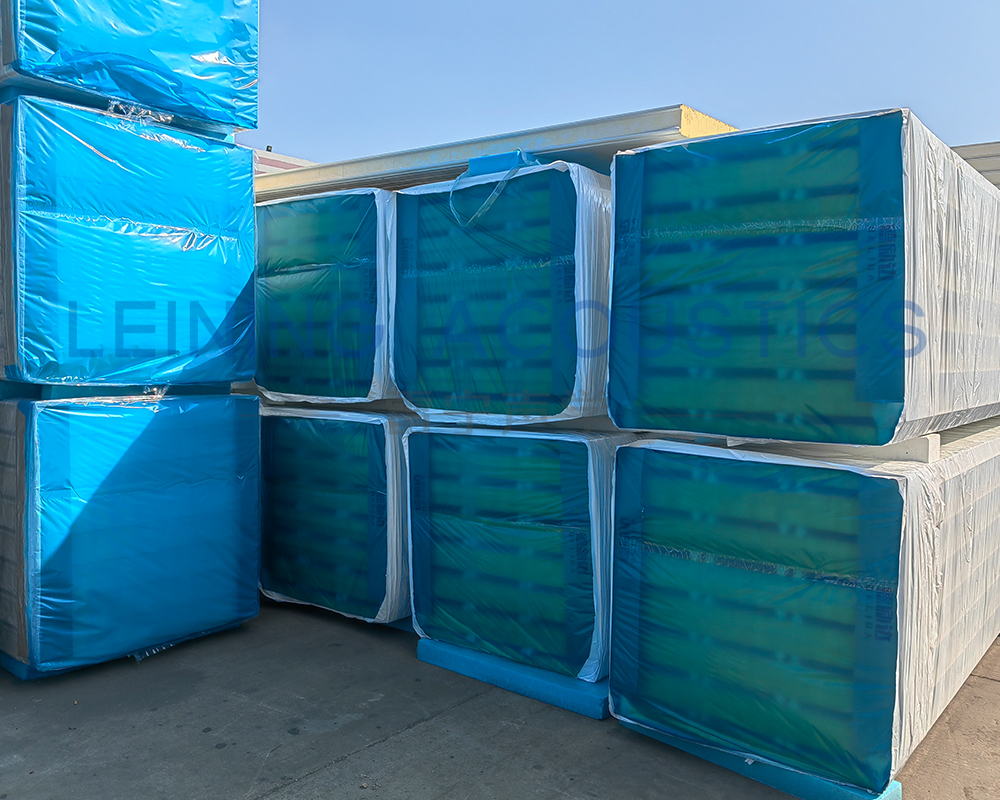 6、隔声效果显著:对雨水、冰雹等冲击而引起的声响有消减作用; 通过在金属钢板上有规律的穿孔和板材内的吸音材料的结合,产生不同的吸音效果。隔声效果可达到RW=29~30 dB。